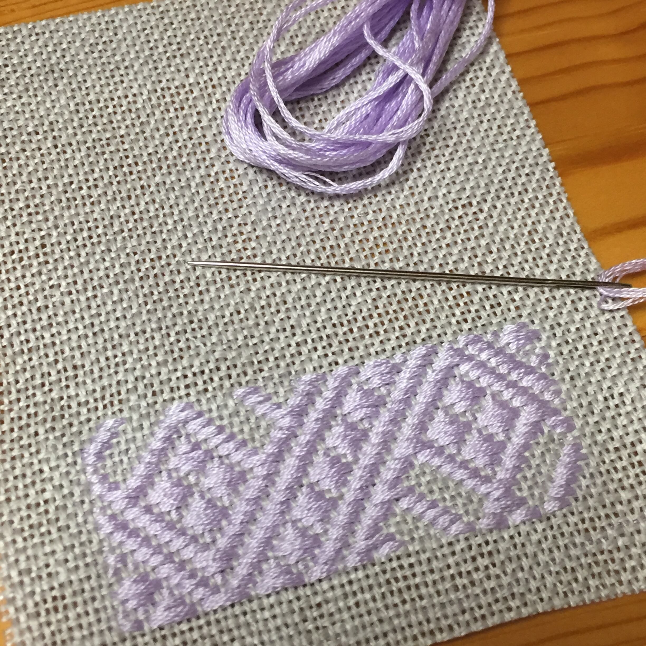 青森県津軽地方に伝わる「こぎん刺し」の技法で製作しました。